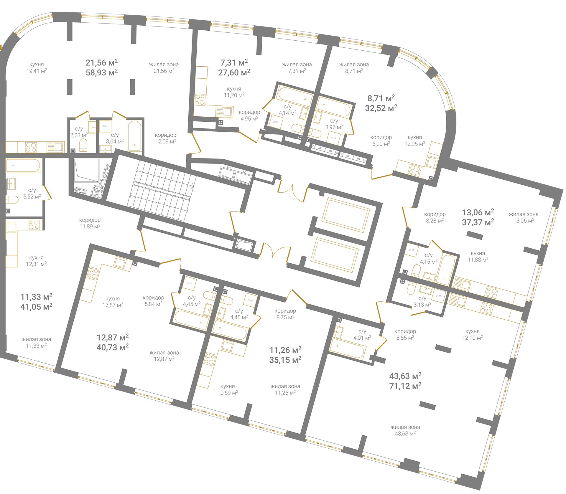 2-комнатная, 59.12 м²